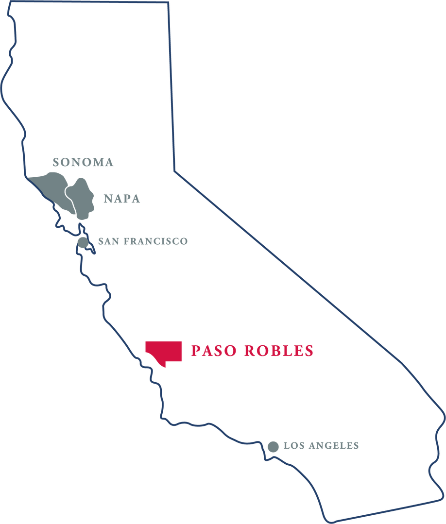 Paso Robles is located in the between San Francisco and LA, just north of San Luis Obispo.